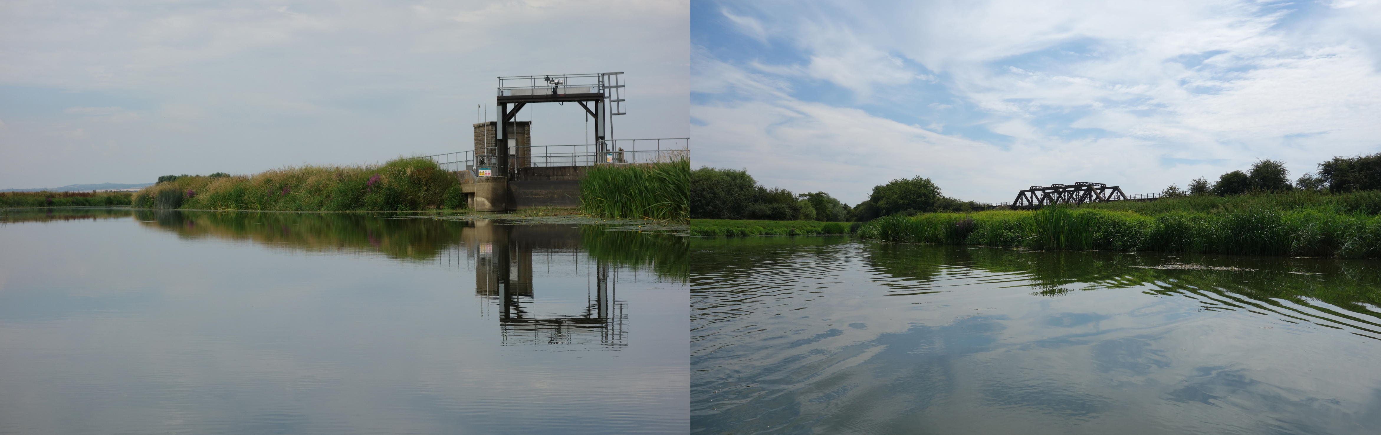 The River Parrett runs like a vein through this part of the Levels… it channels the flows of the landscape and brings life to it. Touching and listening to the water, we got to understand more in-depth this strong relationship of the land with the water. This river is like a thread linking the themes of the valley – it carries different types of water, different traces of history and therefore different meanings. This river contains the stories of the surroundings, its reflections show another angle on the landscape and how images can merge with its flow. It acts as a lens, and only being suspended, floating on the surface, can offer us this different perspective.